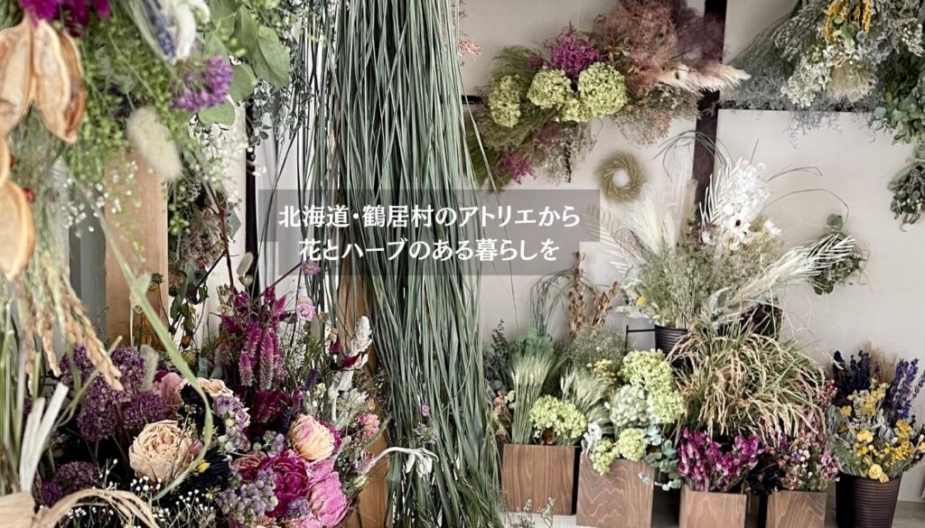 北海道・鶴居村の自然の中で、ハーブや花を育てドライフラワーの作品を作っています。